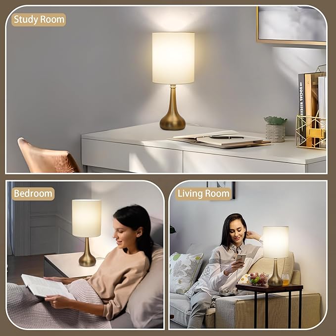 - Appealing Outlook & Great Decor: Vase-inspired body in beautiful brass finish is crowned with beige cylinder lampshades, adding an upscale feeling to the space while maintaining a sense of purity, making the 2 pack bedside touch lamps a great decor to put on nightstand or TV bench to beautify bedroom and living room.