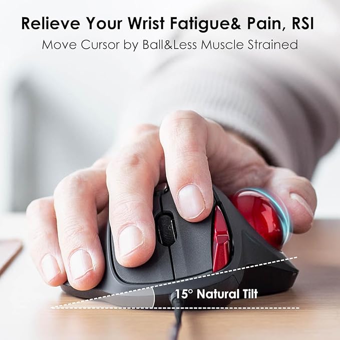 - 【Ergonomic Trackball Design】- Equipped with 34mm trackball and sensitive 3-dot positioning tech, precise thumb control to move the cursor, no need for frequent wrist movement. Technical 15° tilt angle keeps your wrist and shoulder in natural lines and helps to reduce muscle stress, wrist pain, RSI, and carpal tunnel syndrome. Recommend for medium to large hand persons, right-handed. Perfect for drawing, typing, working, playing, etc.