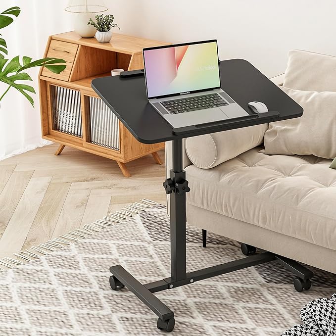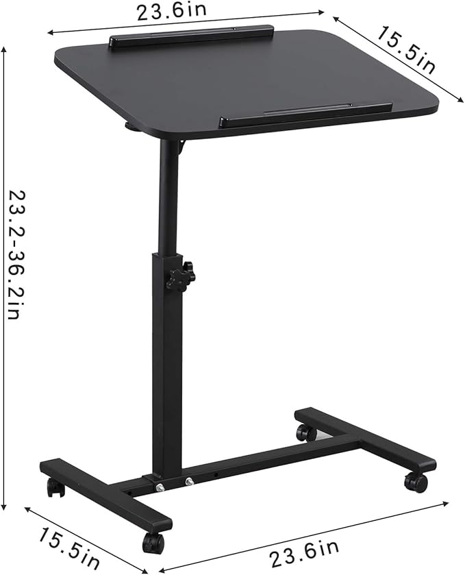 - 【Strengthen office design】2 edge-stoppers which avoid laptop sliding down. It is an over bed table with wheels adjustable height, but also can be use as an mobile computer table or medical bedside table.