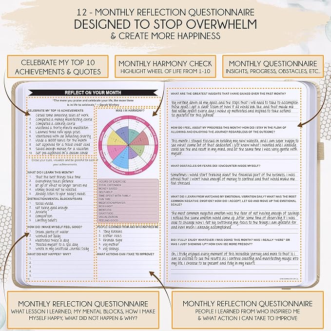 - REDUCE OVERWHELM, STRESS AND FIX PROCRASTINATION - Follow a unique 8 step system that will help you bring back harmony, clarity, and peace in your life while achieving your goals. This planner is perfect for birthday gift, mother's day, anniversary gifts, and christmas gifts.