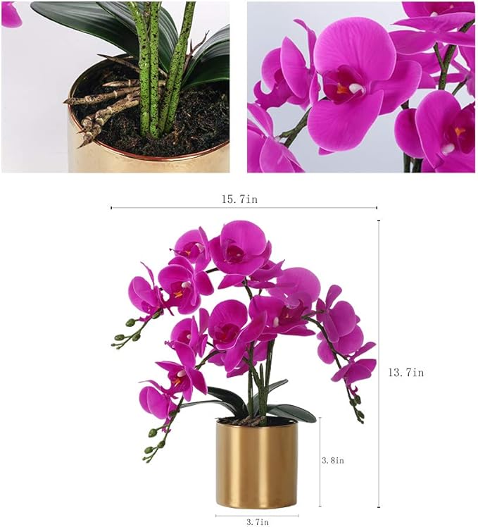 - Size: Orchid bonsai: 13.7 x 15.7 x 4 inches, fake orchid pot size: 3.7 x 3.7 x 3.8 inches. fake potted orchids has 3 stems, each orchid stem with 5 flowers.