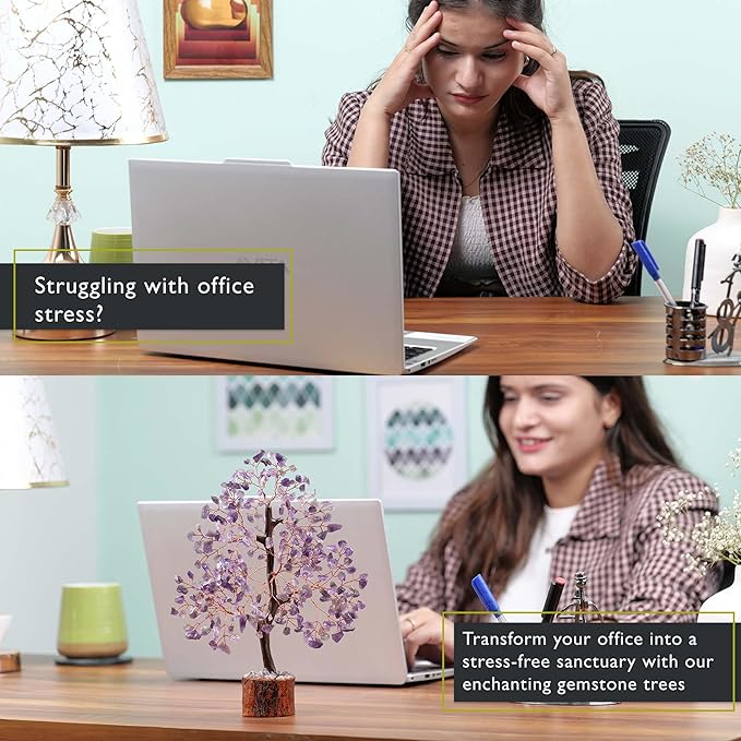 - Prosperity tree specification: Amethyst feng shui tree made from the beautiful small amethyst crystal beads, protection crystals and copper wire with the approximate size 10-12 Inch which is good for chakra decor, wicca decor, pagan decor, spiritual decor, purpose, gifting etc. The chakra stones tree is crafted by the skilled artisans in INDIA who gave a beautiful look to the vastu tree. Gem tree comes in premium box packaging.