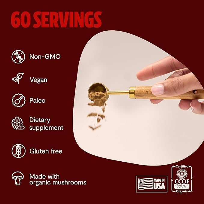 - EASY TO USE DAILY SUPPORT - Each container provides 60 servings of mushroom blend, perfect for adding to tea, coffee, or your favorite beverage. Our easy-to-use powder integrates seamlessly into your daily routine.