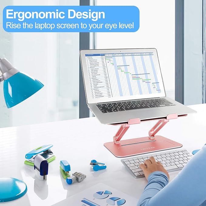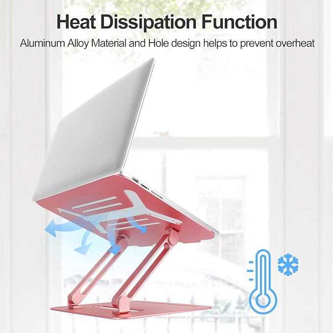 Urmust Adjustable Laptop Stand for Desk Aluminum Computer Stand for Laptop Riser Holder Notebook Stand Compatible with MacBook Air Pro Ultrabook All Laptops 11-17 inch (Rose Gold)