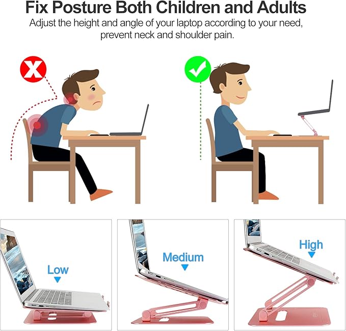 - 【Adjustable Design】: This computer stand can raise your laptop screen to eye level, Keep you in right posture, reduce neck and shoulder pain. Especially good for teachers and students teaching online, home offices