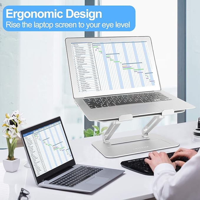Urmust Adjustable Laptop Stand for Desk Aluminum Computer Stand for Laptop Riser Holder Notebook Stand Compatible with MacBook Air Pro Ultrabook All Laptops 11-17 inch (Silver)