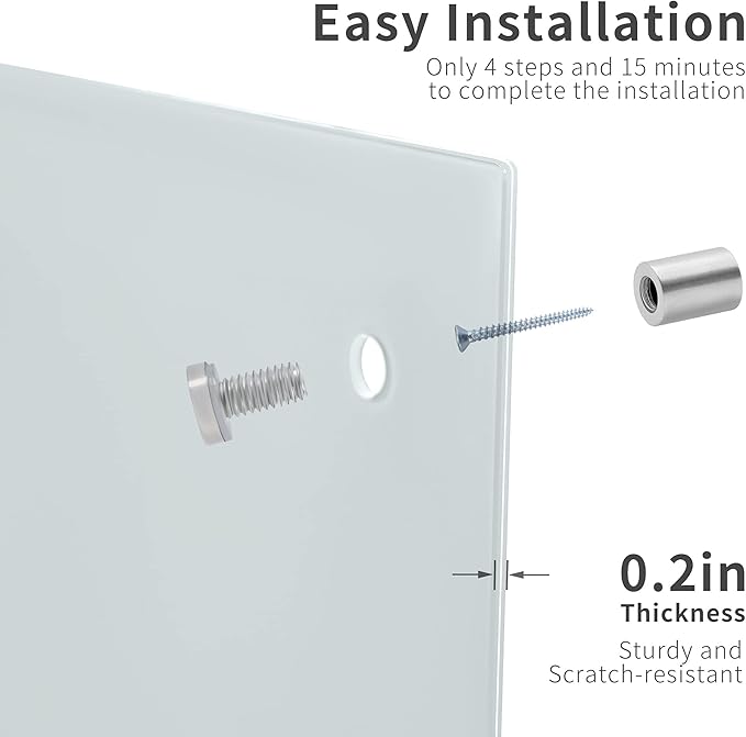 - Frameless tempered glass dry erase board,come with 1 marker pen,1 magnetic eraser/penholder and 4 magnet,install accessories.