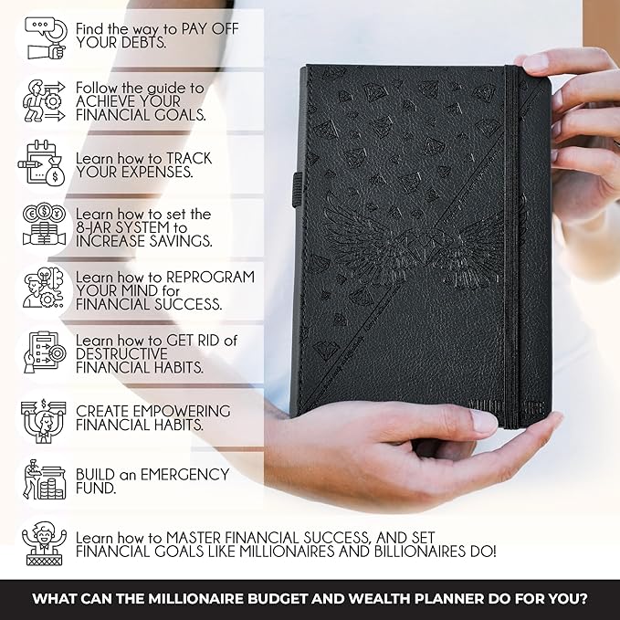 - UNDATED BUDGET PLANNER - Undated budget planner is a deluxe planner & wealth planner showing you how to reprogram your mind to master financial success. A5 Size (5.8 x 8.3 inches), thick paper 100 gsm, inner pocker, financial success road map, 12 monthly planning overviews made in high quality lay-flat binding with 144 pages of impactful budgetting lessons, includes 3 sheets colorful budget affirmations and stickers. The millionaire secrets helps you to find a way to pay off your debts, track your expenses, increase savings, and build emergency fund.