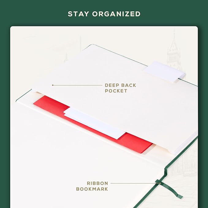 - Premium British Craftsmanship - Bound in tactile vegan leather, this A4 (8.5 x 11.5") music notebook features a robust hardcover, secure elastic closure, elegant bookmark ribbon, and a deep back pocket for storing loose sheets and accessories. The 180° lay-flat binding delivers a seamless writing experience on a piano stand and a busy teacher’s desk.