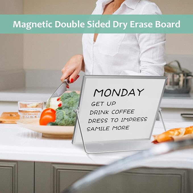 - Smoothly Writing and Easy to Clean: Magnetic small desktop white board comes with a smooth and sturdy writing surface. It's easy to write on and easy to wipe clean without stain. The double-sided lapboard will give you maximize writing space. Our white board set is safe and durable. Please peel off protective film on double sides before using.