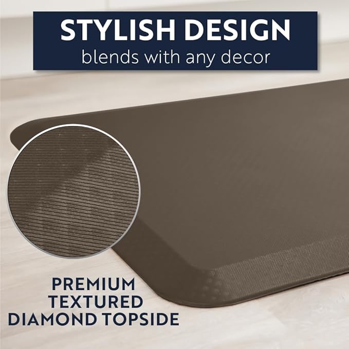 - USE AT HOME OR WORK: perfect for anyone who stands for long periods of time at home or work; great rug for in front of kitchen counters, laundry rooms, standing desks, workspaces, etc; ideal for professional use in locations such as hair salons, restaurants and anywhere all day comfort is essential; stylish diamond texture blends seamlessly with any decor