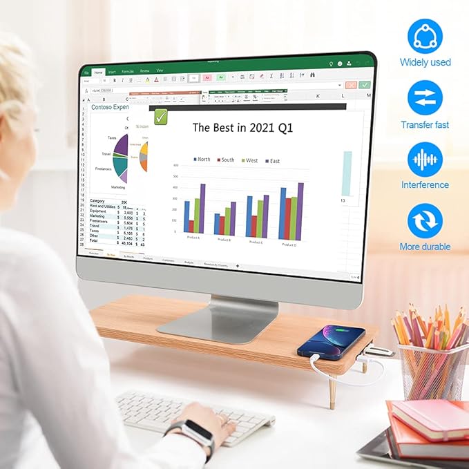 - ERGONOMIC MONITOR RISER – The monitor stand is designed to elevate your monitor or laptop to a more comfortable viewing position. The stand relieves the shoulders, eyes, and neck by raising the monitor to the same height as the eyes. That gives you a better posture to reduce neck and back pains.
