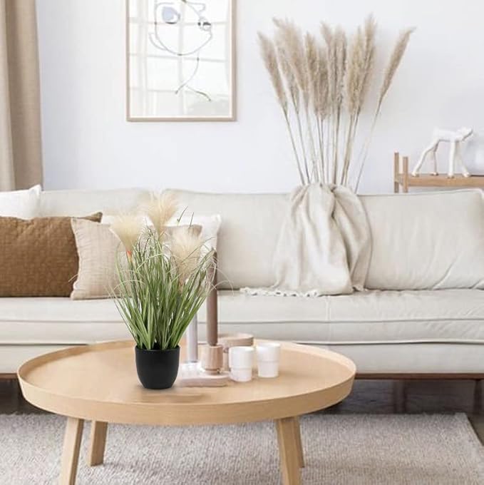 - Lifelike Small Potted plants --- Looked as close to reality, the fake pampas plant brings a sense of warmth and adds a natural look to your living space. Its leaves are bendable so you can shape them any way you like.