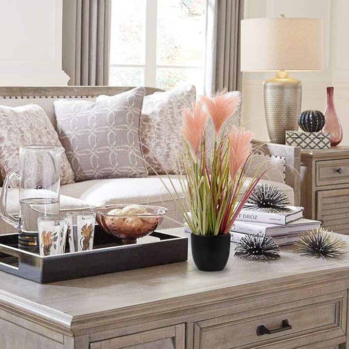 - Lifelike Small Potted plants --- Looked as close to reality, the fake pampas plant brings a sense of warmth and adds a natural look to your living space. Its stem is bendable so you can shape it any way you like.