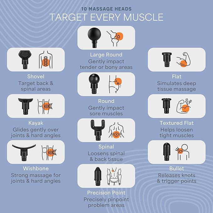 - QUIET YET POWERFUL PERFORMANCE: Built with a low-noise motor under 50dB, our quiet massage gun helps you relax muscles at home, at the gym, or during travel—without disruptive sound.