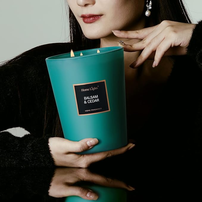 HomeLights Highly Scented Soy Candles Big 33.3 oz for Home. 3 Cotton Wicks, Smokeless Long Lasting 130 hrs in Balsam & Cedar. 5x6, Great Gift for Women & Men