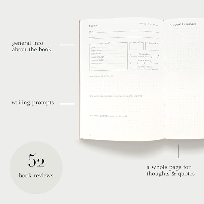 - The all-in-one book journal for book lovers. A thoughtful gift for an avid reader to revisit their reading experiences years later