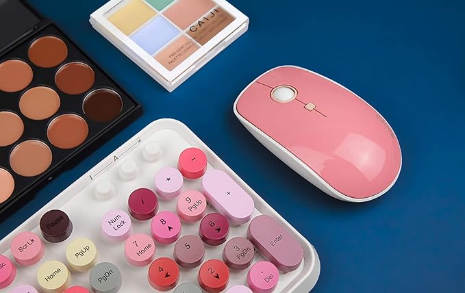 - 【Wireless Compact Keyboard&Mouse Set】 Includes Cute Wireless Color Keyboard with Round Retro Style Key and Wireless Gaming Mice. ALL-IN-ONE PC GAMER VALUE KIT. ATTENTION: The CONNECTOR FOR THE PC IS ON THE BACK OF THE MICE.