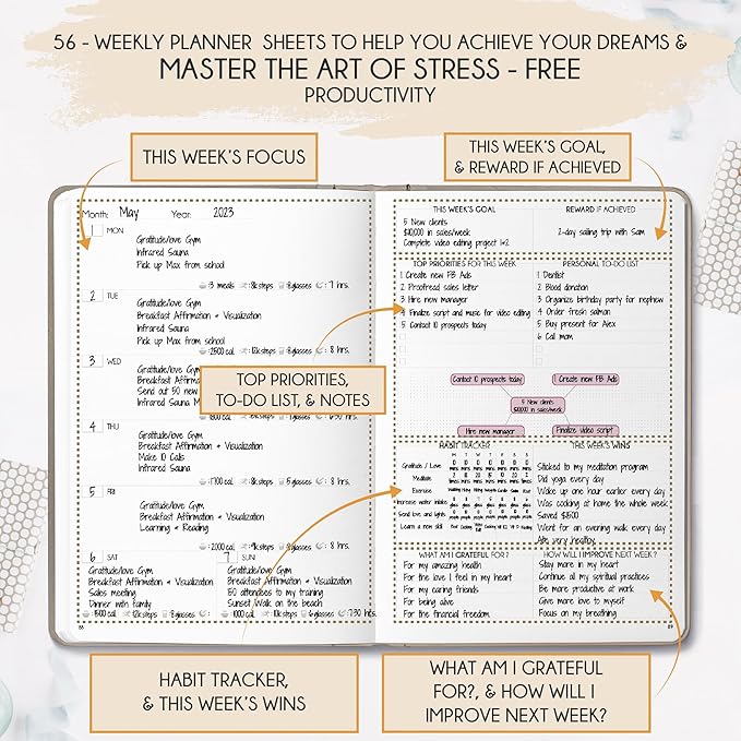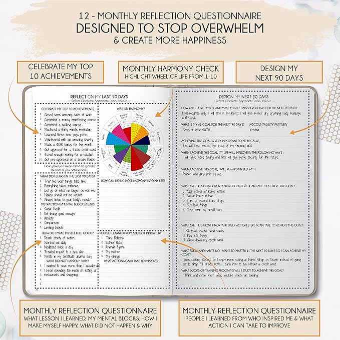 - REDUCE OVERWHELM, STRESS AND FIX PROCRASTINATION - Follow a unique 8 step system that will help you bring back harmony, clarity, and peace in your life while achieving your goals. This planner is perfect birthday gifts for men and women, anniversary gift for couple and lastly gifts for friends