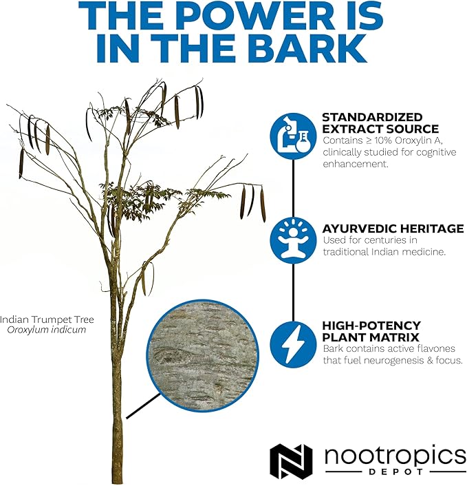 Nootropics Depot Sabroxy® Tablets | 100mg | 90 Count | Minimum 10% Oroxylin-A | Oroxylum indicum | May Help Promote Focus & Motivation | May Help Promote Cognitive Function