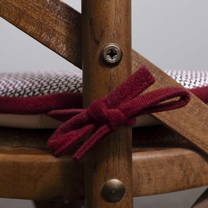 Sweet Home Collection Chair Cushion Memory Foam Pads with Ties Honeycomb Pattern Slip Non Skid Rubber Back Rounded Square 16" x 16" Seat Cover, Cameron Wine White