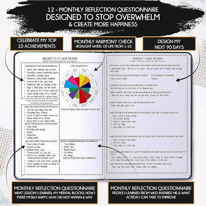 - REDUCE OVERWHELM, STRESS AND FIX PROCRASTINATION - Follow a unique 8 step system that will help you bring back harmony, clarity, and peace in your life while achieving your goals. This planner is perfect birthday gifts for men and women, anniversary gift for couple and lastly gifts for friends