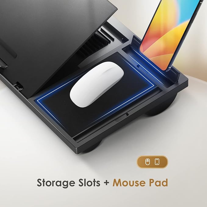 - ADJUSTABLE TILT ANGLES: This laptop stand features 8 tilt positions. Choose the most comfortable viewing or typing angle for your device.Up to 15.6-inch laptop also have the full space for mouse tracking