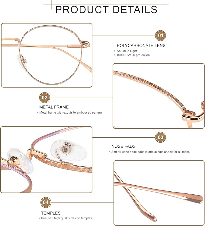 - HIGH QUALITY MATERIALS - This vintage blue light blocking glasses is made of anti-blue light lens,spring hinge, all the details ensure you a perfect performance.