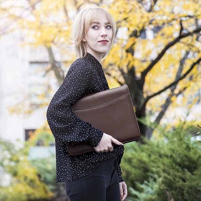 - Sleek & stunning in hand - Compact for travel: Leather folder looks gorgeous held in hand walking into the board meeting, law school, or interview while sliding neatly into handbags, backpacks while maintaining far greater storage than traditional leather planners.