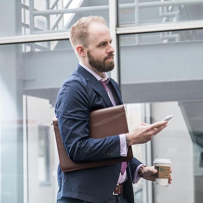 - Still superior, and now upgraded for life’s biggest advancements: Originally crafted to suit the advanced professional, we recently added smart changes to this customized vegan leather portfolio for those returning to pursue their MBA, or interviewing for that next wrung up the ladder; features include solar calculator, full PU leather interior, dual start zipper, and abundant storage so paper never crunches or falls out