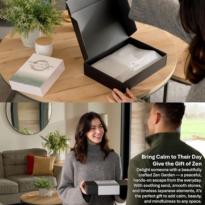 - Wonderful High End Japanese Gift- Treat yourself or bring calm & happiness to loved ones. Japanese Zen Garden for desk; gorgeously packaged with the elements for inner peace. A deluxe, Zen gift set