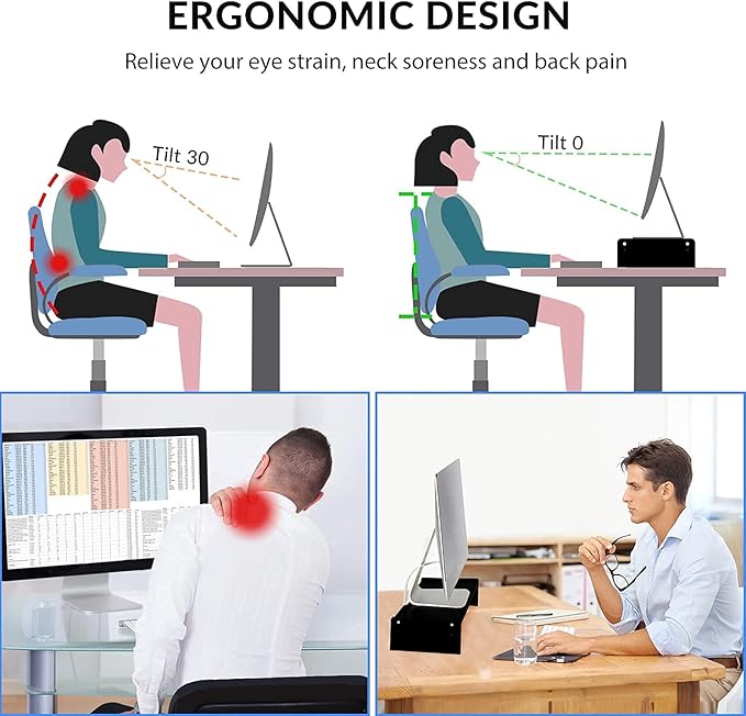 - ERGOMOMIC MONITOR RISER: Keep your slim monitor stand at comfortable eye level, providing you with a better visual experience. It can make you develop a good sitting position that could relieve your eye strain and your neck and back pain, enhancing work efficiency.