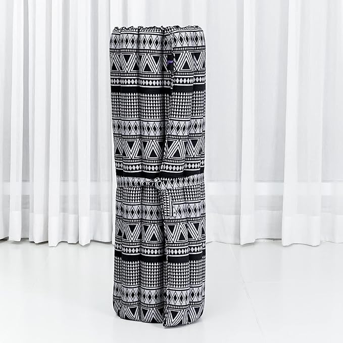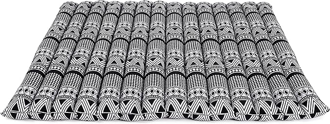 - Contents: The yoga meditation mat measures 28 x 28 x 2 inches (WxDxH) when spread out. After use, it can be rolled-up for storage and transport. The rolled-up mattress measures 28 x 8 x 8 inches (WxDxH)