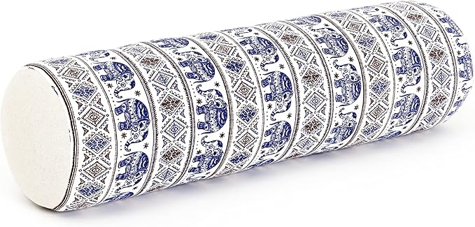- The yoga bolster pillow measures 20 x 6 x 6 inches (WxDxH), is firm, and has a cylindrical form. Thanks to its softness and lightness, the neck roll can be stored easily and quickly