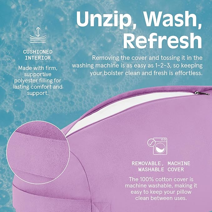 - WASHABLE COTTON COVER: Natural 100% cotton pillow cover removes easily for machine washing, maintaining freshness while reducing synthetic materials for hassle-free care