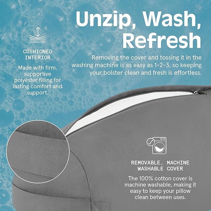 - WASHABLE COTTON COVER: Natural 100% cotton pillow cover removes easily for machine washing, maintaining freshness while reducing synthetic materials for hassle-free care