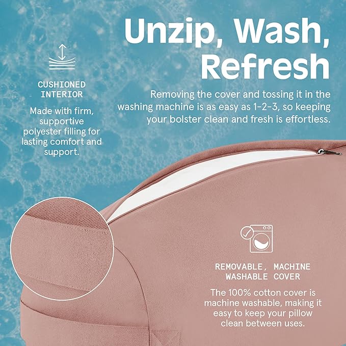 - WASHABLE COTTON COVER: Natural 100% cotton pillow cover removes easily for machine washing, maintaining freshness while reducing synthetic materials for hassle-free care
