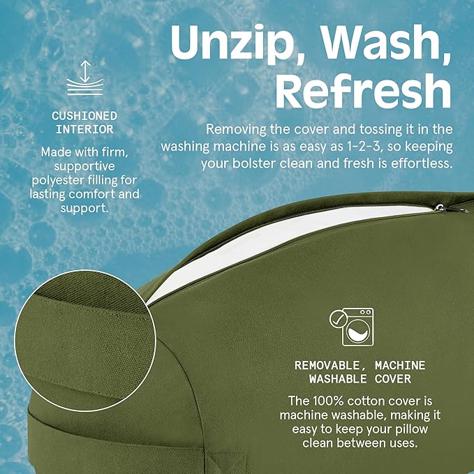 - WASHABLE COTTON COVER: Natural 100% cotton pillow cover removes easily for machine washing, maintaining freshness while reducing synthetic materials for hassle-free care