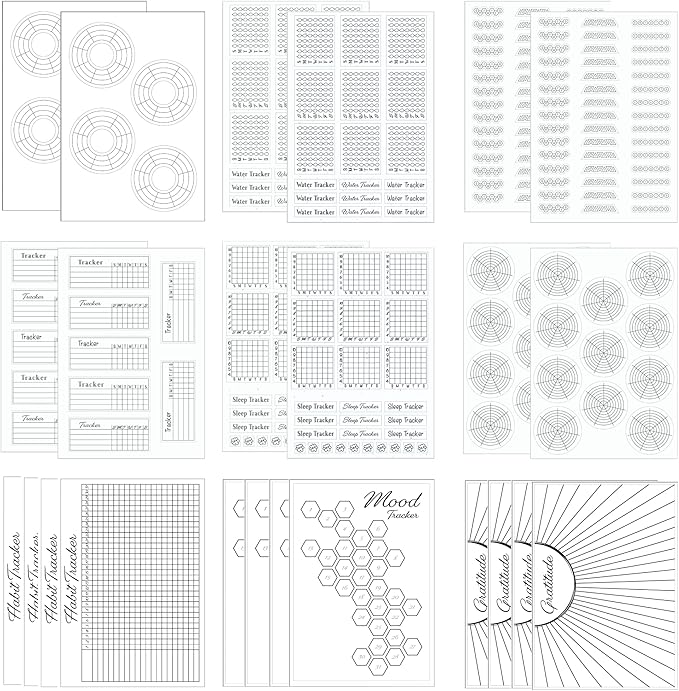 Habit Tracker Planner Stickers - x24 Sheets Habit Stickers - Journaling Supplies to Track Water, Sleep, Goals, Productivity, Gratitude, Mood and More - Weekly & Monthly Habit Trackers