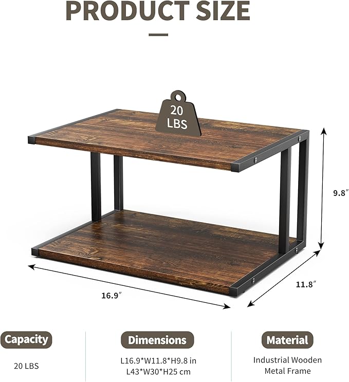 - VINTAGE DESIGN: Rustic and aesthetic wood grain that fits perfectly with the black matt paint. Four adjustable feet are included to keep the desktop printer stand stable and prevent scratch on tabletop.
