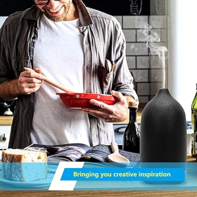 Stone Diffuser, Ceramic Essential Oil Diffuser, Humidifier 160ml Ultrasonic Oil Diffuser for Aramatherapy. (Black)