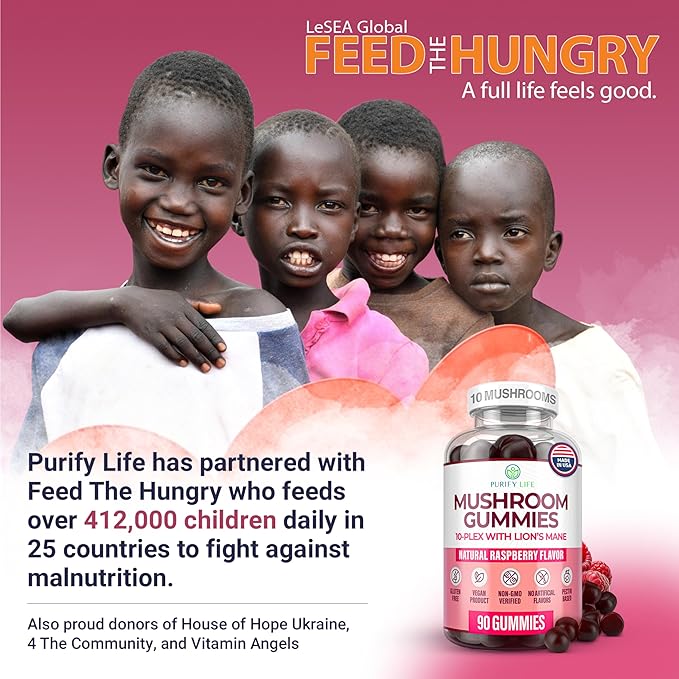 - [Worlds First 10-Plex Mushroom Gummies] Purify Life releases the very first 10 Mushroom Complex in gummy form. Our Mushroom Gummies have Maitake, Shiitake, Lions Mane, Reishi, Cordyceps, Chaga, Turkey Tail, White Button, Black Fungus, Royal Sun Extract.