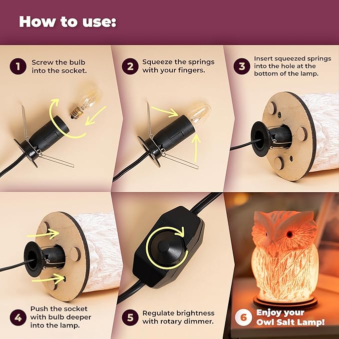 - 🦉 [Natural Rock Salt] Awesome Owl Salt Lamp is made of pure natural rock salt that is the source of fresh clean air. Power Cord, wooden gift box are included, +1 light bulb as a gift