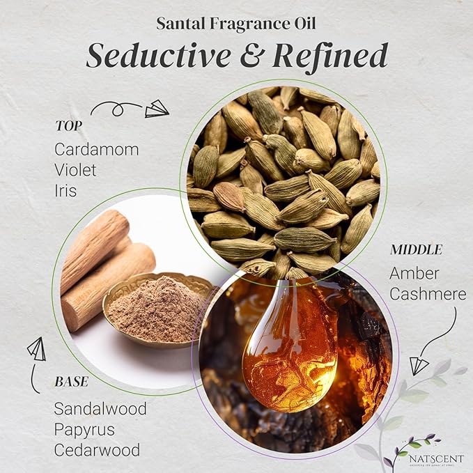 - Seductive & Refined Santal diffuser oil: Transform your home with our rich and alluring Santal fragrance with a smoky, woody scent that's both unisex and memorable ; Use it in your diffuser and embark on a sensual adventure of sophistication