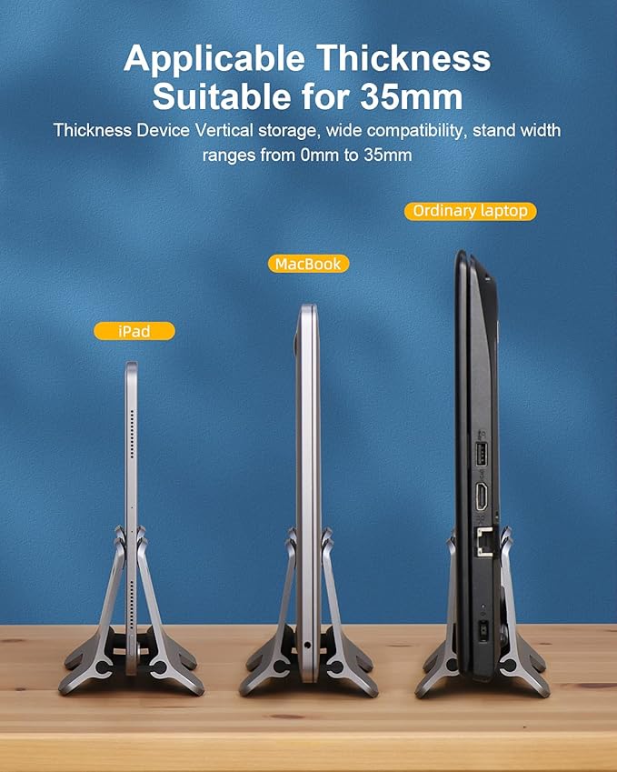 - Applicable Thickness: Suitable for 35mm thickness device. Vertical storage, wide compatibility, stand width ranges from 0mm to 35mm