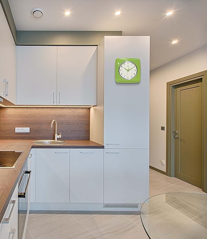 Infinity Instruments Retro Wall Clock – 9-Inch Square Silent Non-Ticking Mid-Century Modern Clock – Vintage Decorative Wall Clock for Kitchen, Office, or Diner – Apple Green