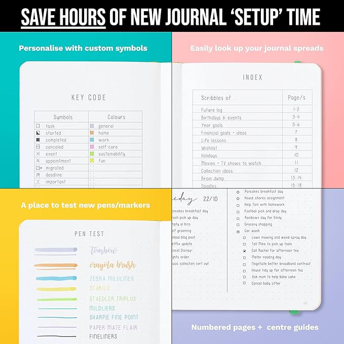 - PRE-DESIGNED FOR EFFORTLESS PLANNING: Includes pre-printed key, 3 index pages, 2 pen-test spreads, numbered pages, STM pioneered page centre and edge guides—so you can skip the setup and jump right into planning, tracking, and creating spreads.