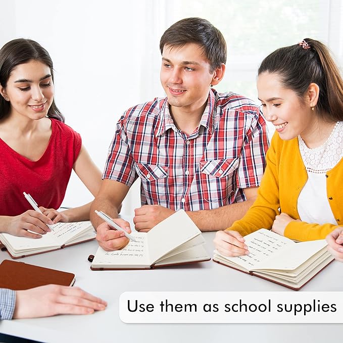 - Feela 24 Pack Classic Ruled Notebooks contains 24 classic brown ruled sturdy cover notebooks and 24 Black Retractable Pens. Each of the notebooks measures 8.3” x 5.1”, which is perfect to carry and easily held by young girls and boys. These black cute pens are customized to be placed in the pen holder, which is pretty convenient.