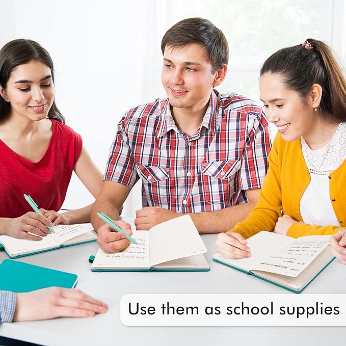 - Feela 24 Pack Classic Ruled Notebooks contains 24 classic emerald ruled sturdy cover notebooks and 24 Black Retractable Pens. Each of the notebooks measures 8.3” x 5.1”, which is perfect to carry and easily held by young girls and boys. These black cute pens are customized to be placed in the pen holder, which is pretty convenient.