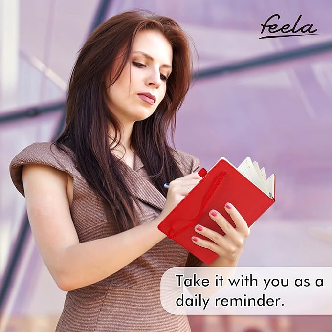 - Feela 5 Pack Classic Ruled Notebooks contains 5 classic red ruled sturdy cover notebooks and 5 Black Retractable Pens. Each of the notebooks measures 8.3” x 5.1”, which is perfect to carry and easily held by young girls and boys. These black cute pens are customized to be placed in the pen holder, which is pretty convenient.